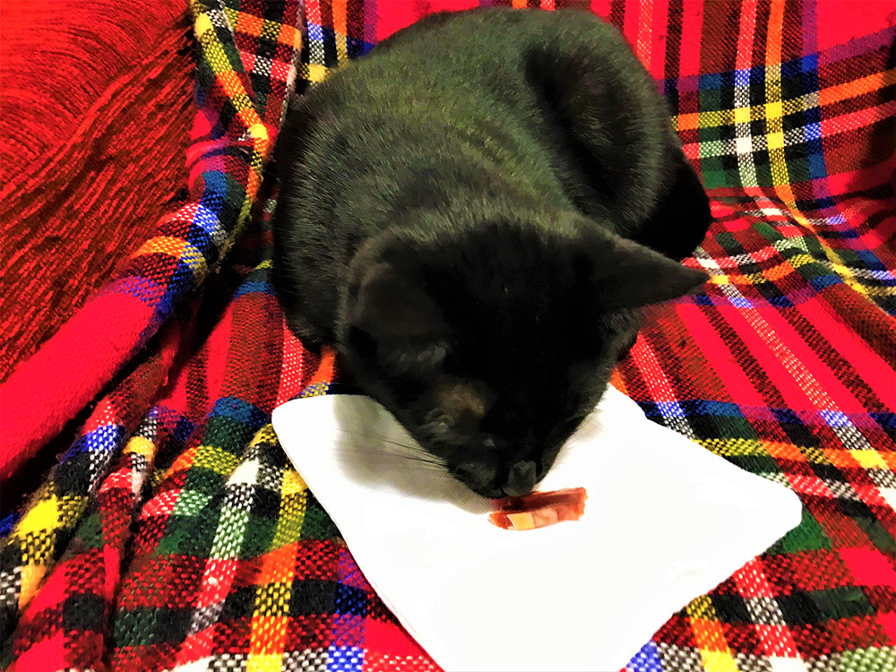 Plâng după bani și râd că m-am lăsat fraierit. Râd că „o țară ca afară”, că ne merităm soarta, că asta e nația, că asta e situația. Şi învârt în minte aceeaşi întrebare fără răspuns: De ce naiba vindeți ceva ce nu puteți tăia nici comercializa în condiții normale? Încerc să scap de dilemele alimentare, sorbind dintr-un pahar de shiraz, fără jambon alături și privirea mi se duce spre cel mai fericit membru al familiei – pisica Dop. Botezată așa din cauza dopurilor împrăștiate în casă, Dop mă privește cu interes din fotoliu. Dă din coadă. Are și de ce…