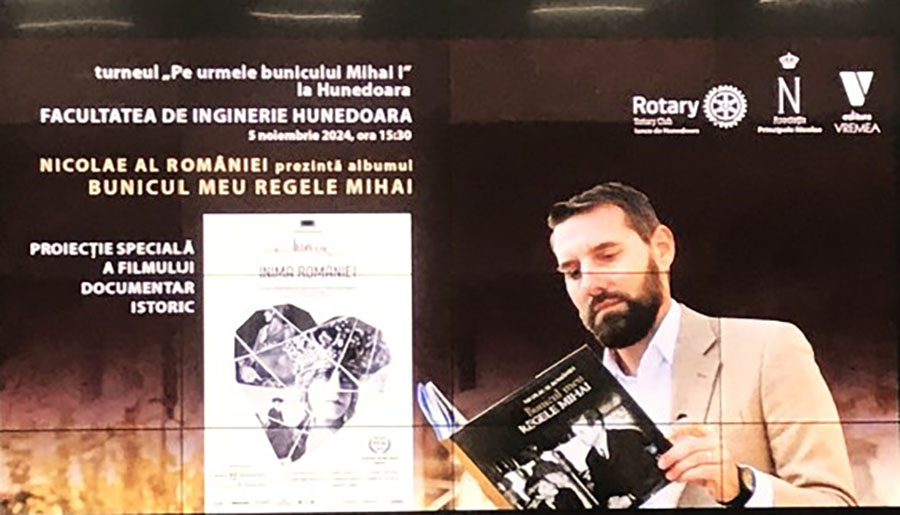 Sub egida Rotary Club Iancu de Hunedoara, având ca gazdă Institutul de Inginerie Hunedoara, aseară a avut loc lansarea albumului „Bunicul meu, Regele Mihai”.