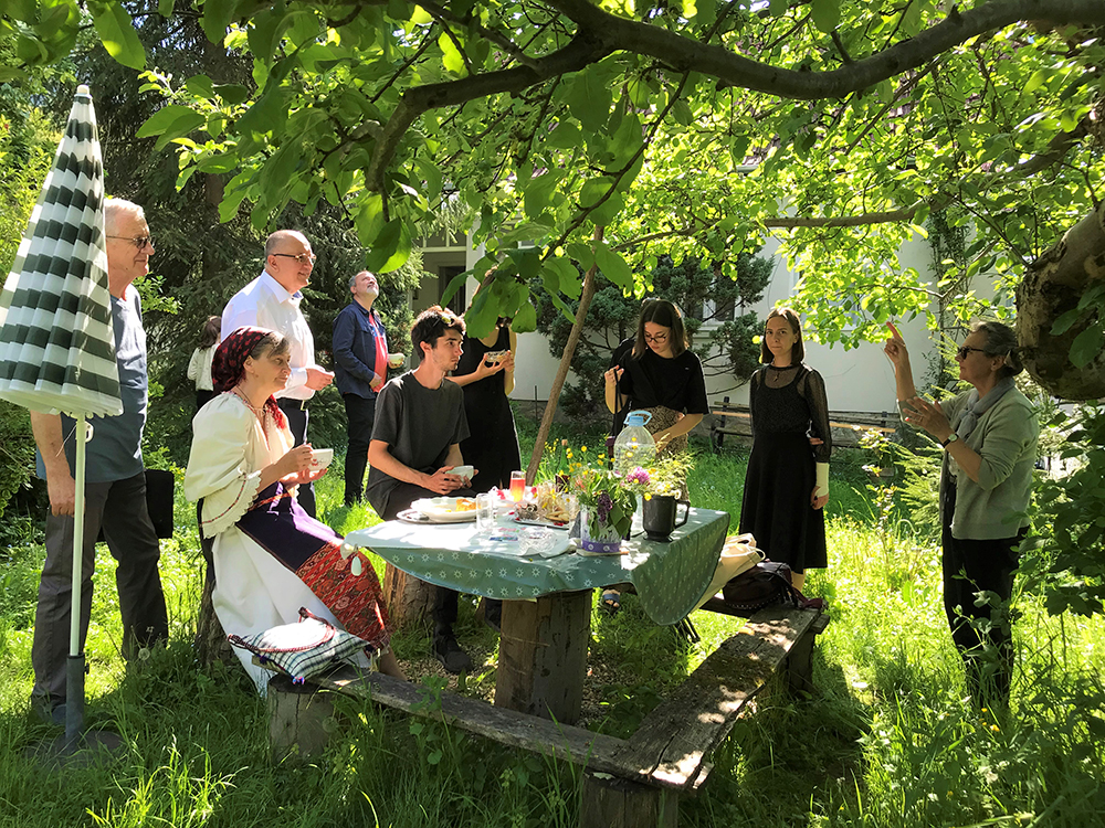 La sfârșitul vernisajului, organizatori și expozanți s-au reunit fără protocol oficial, la umbra unui măr în floare, frumos ca o poveste de demult. În grădina profesoarei Voichița Zeller, un om de excepție care se confundă cu istoria Băiței moderne și care atunci când povestește de vremuri trecute, reușește să farmece pe oricine, gazda a fost bucuroasă de oaspeți neașteptați. Apă de izvor rece și sănătoasă, cu sirop de zmeură și o cremă de zahăr ars cum rar poți gusta, au reprezentat meniul de sfârșit al unei povești nesfârșite despre simboluri și ancestralitate.